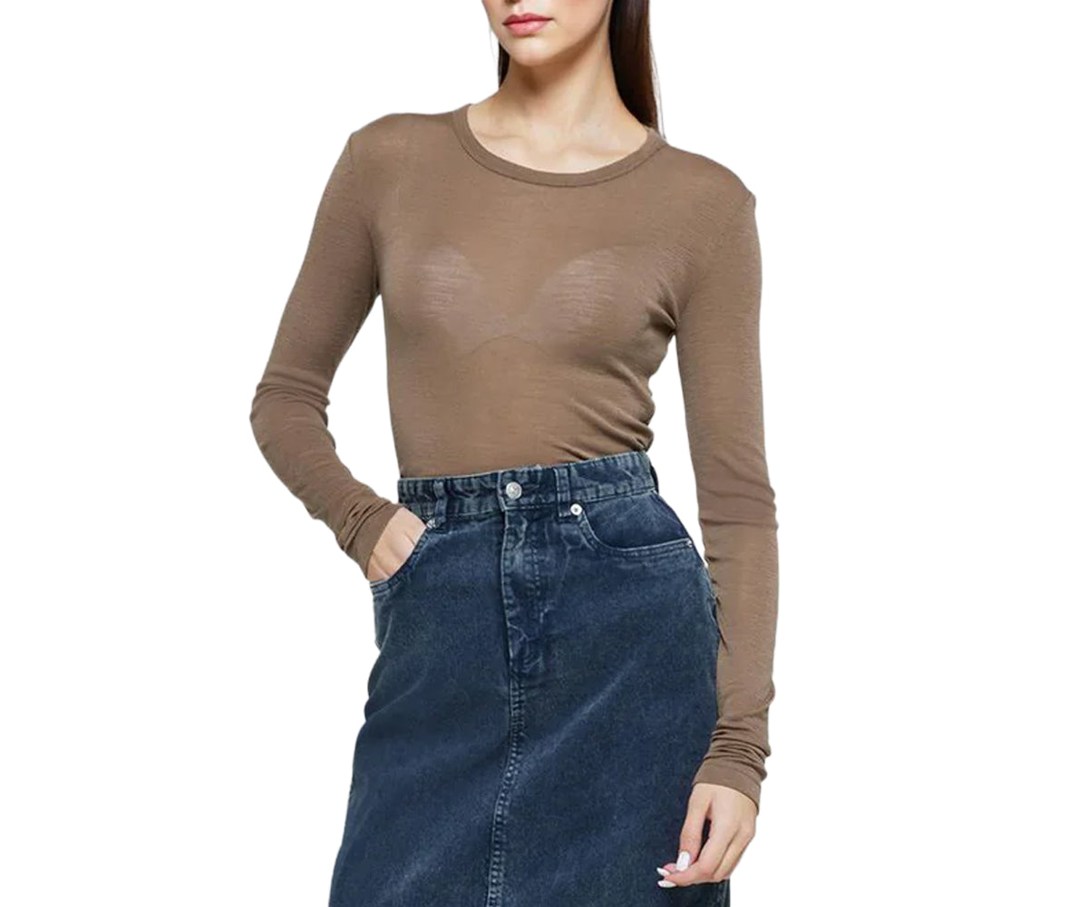 Natashas è un maglione a maniche lunghe realizzato in 100% lana merino, per una qualità morbida e confortevole. Il maglione ha una vestibilità aderente ed è caratterizzato da uno scollo rotondo. La modella è alta 180 cm e indossa una taglia S.