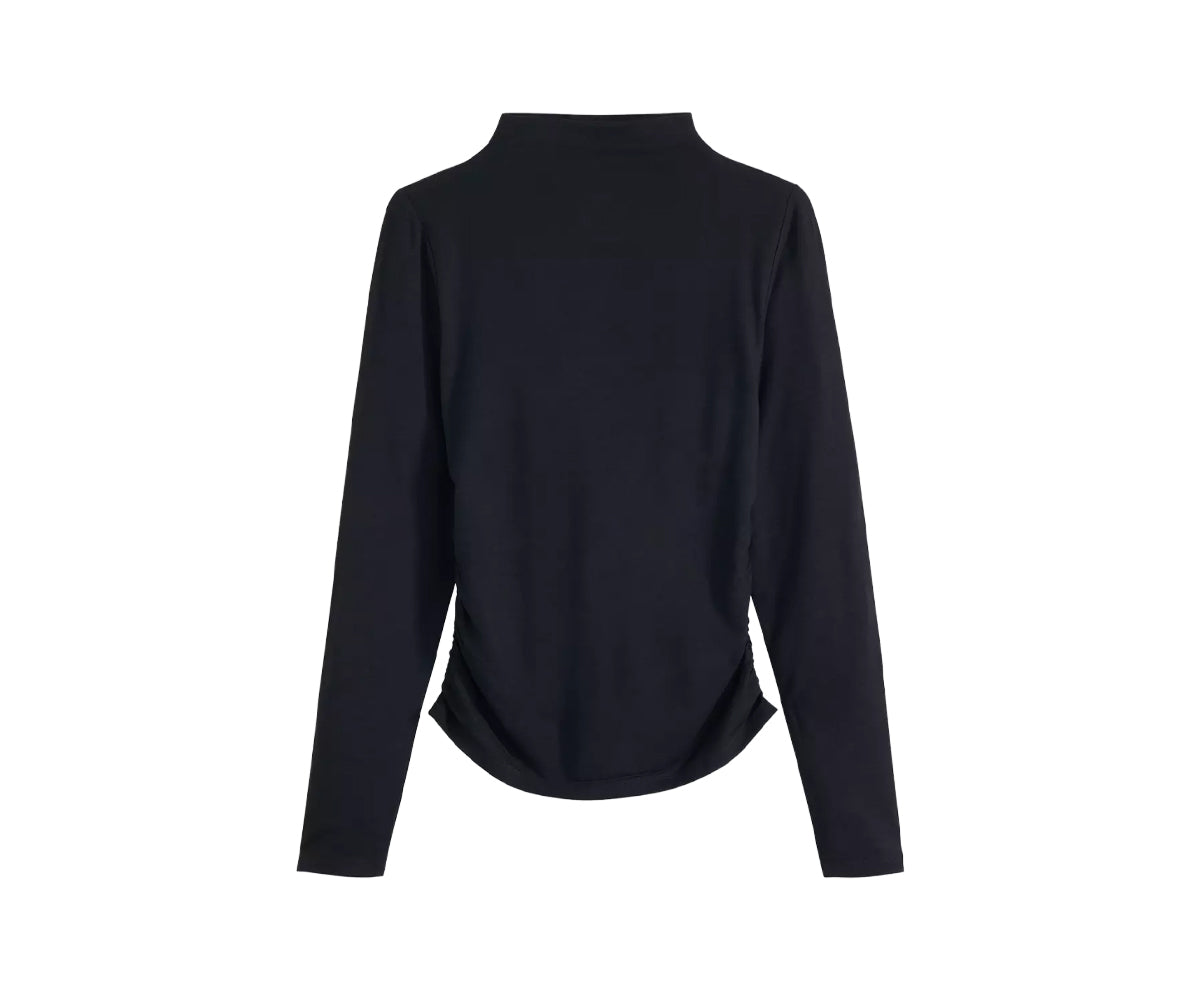 Elegante e comoda allo stesso tempo, la maglia Nina impreziosisce ancora di più il tuo outfit. Presenta un collo a lupetto, un design arricciato e un fit slim che avvolge la figura.