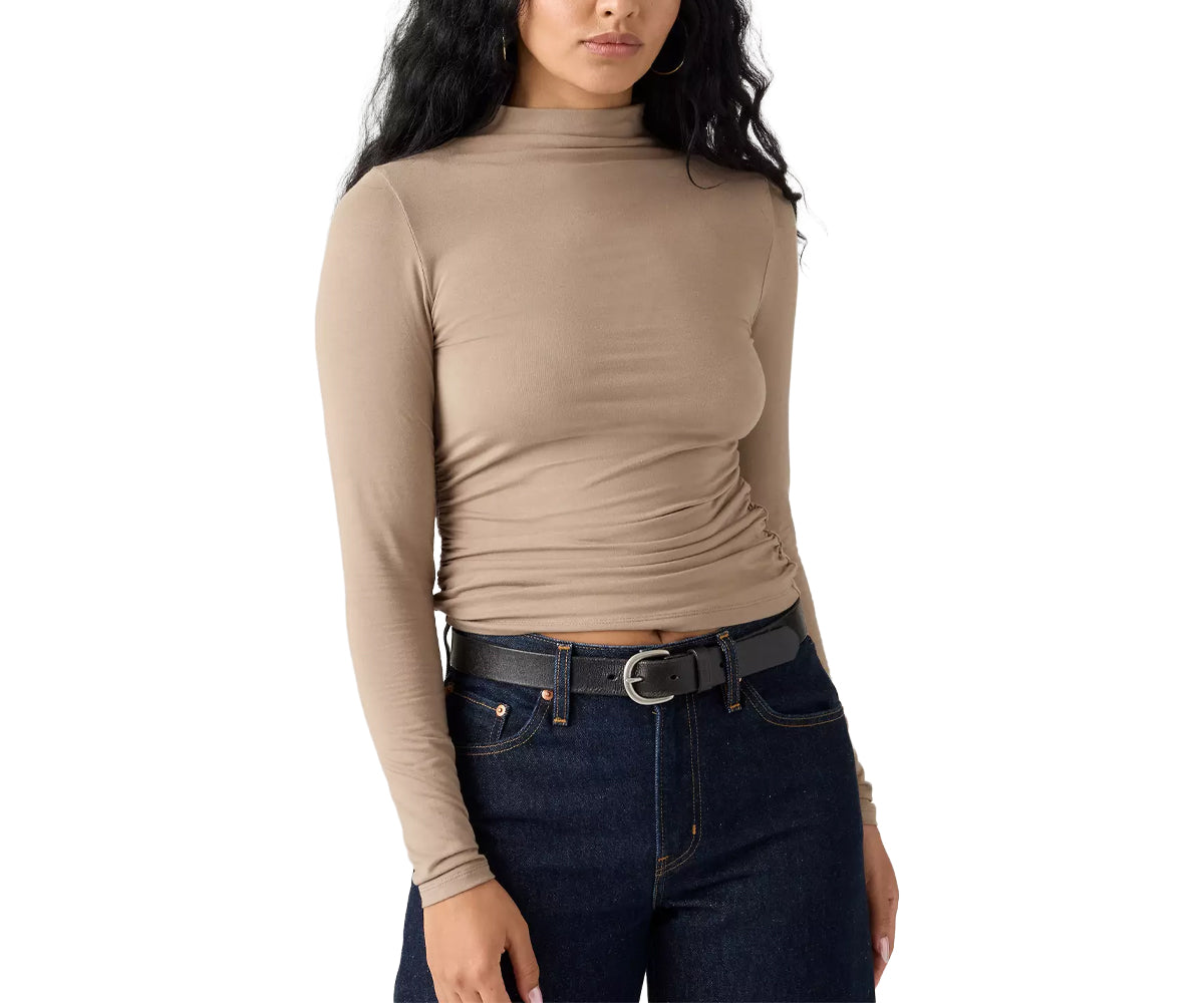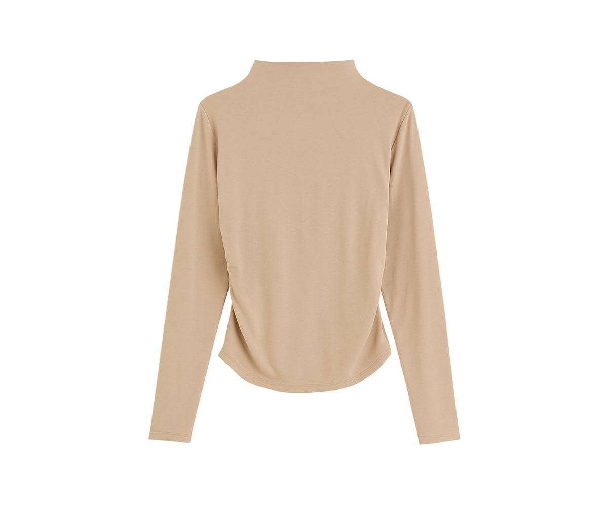 Elegante e comoda allo stesso tempo, la maglia Nina impreziosisce ancora di più il tuo outfit. Presenta un collo a lupetto, un design arricciato e un fit slim che avvolge la figura.