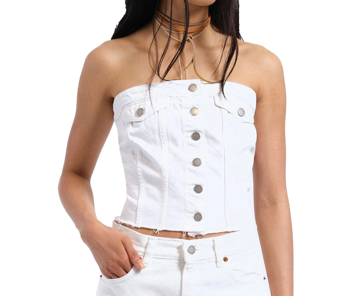 - Tessuto denim rigido (non elasticizzato); parte posteriore elasticizzata