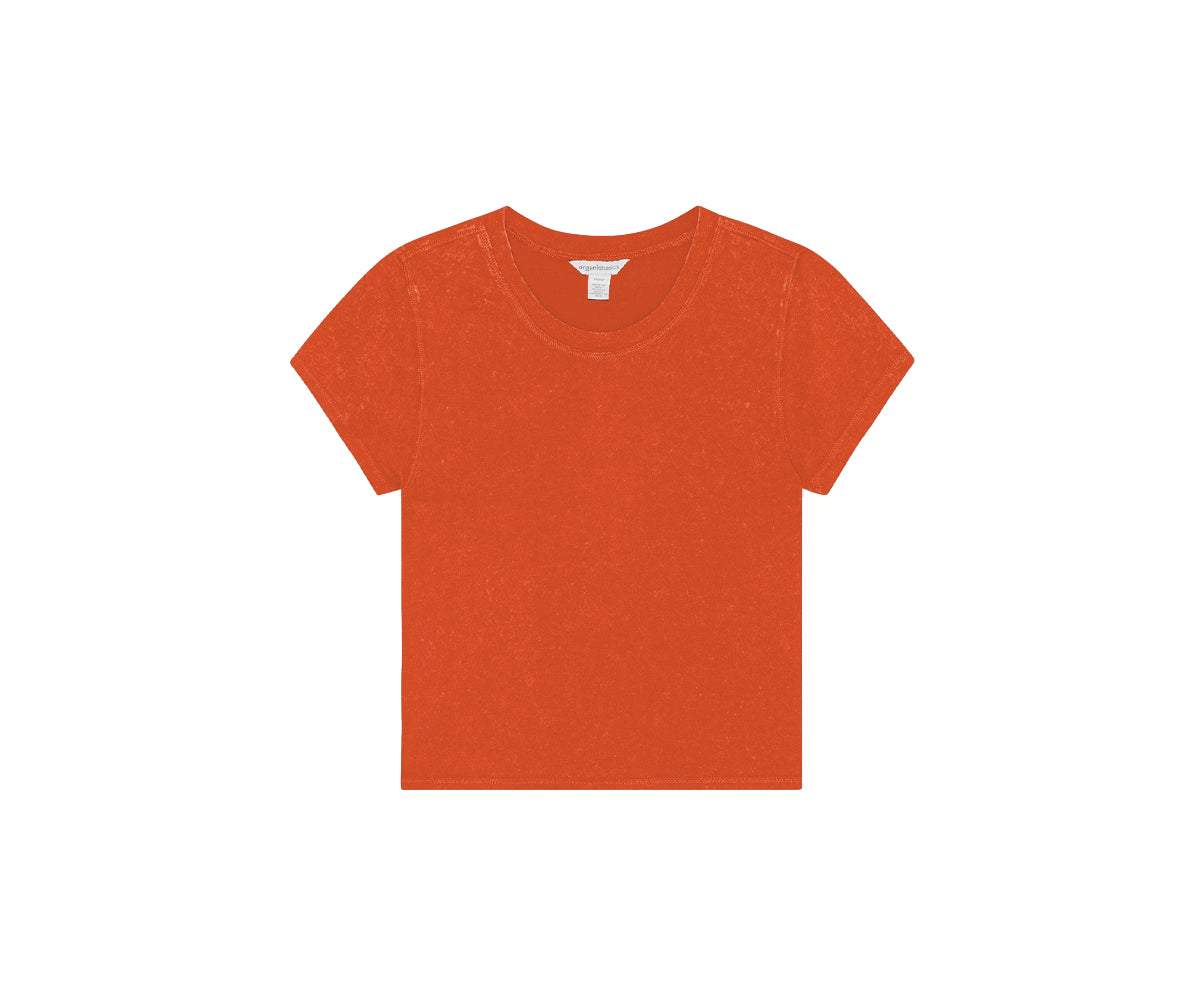 Questa morbida t-shirt aderente, realizzata in cotone biologico al 95%, è a maniche corte e ha una vestibilità da t-shirt per neonati.