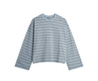 T-shirt ampia in jersey di cotone biologico. Caratterizzata da maniche lunghe e larghe e scollo a coste. Realizzata con una stampa a righe tinta in filo in 100% cotone biologico.