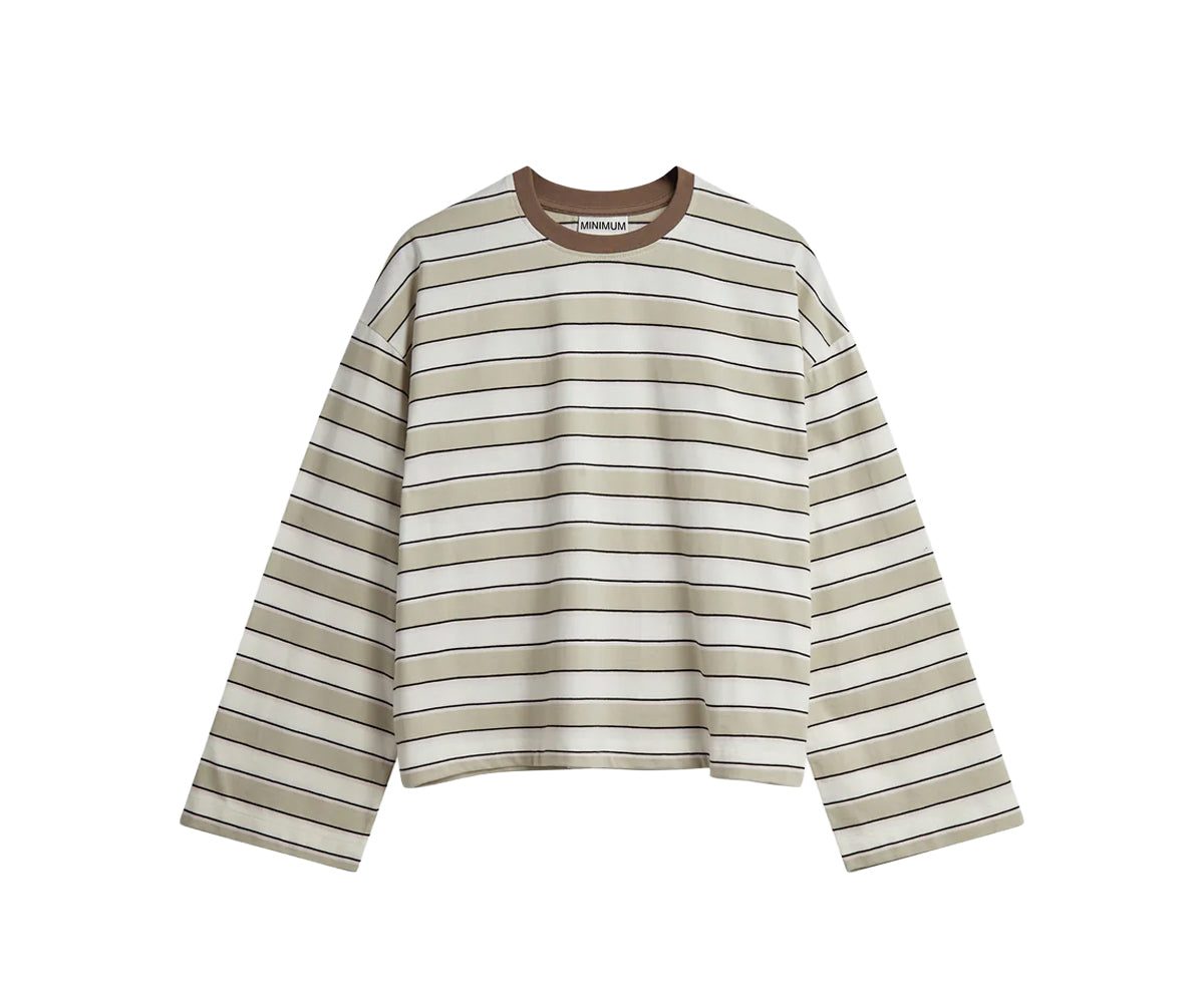 T-shirt ampia in jersey di cotone biologico. Caratterizzata da maniche lunghe e larghe e scollo a coste. Realizzata con una stampa a righe tinta in filo in 100% cotone biologico.