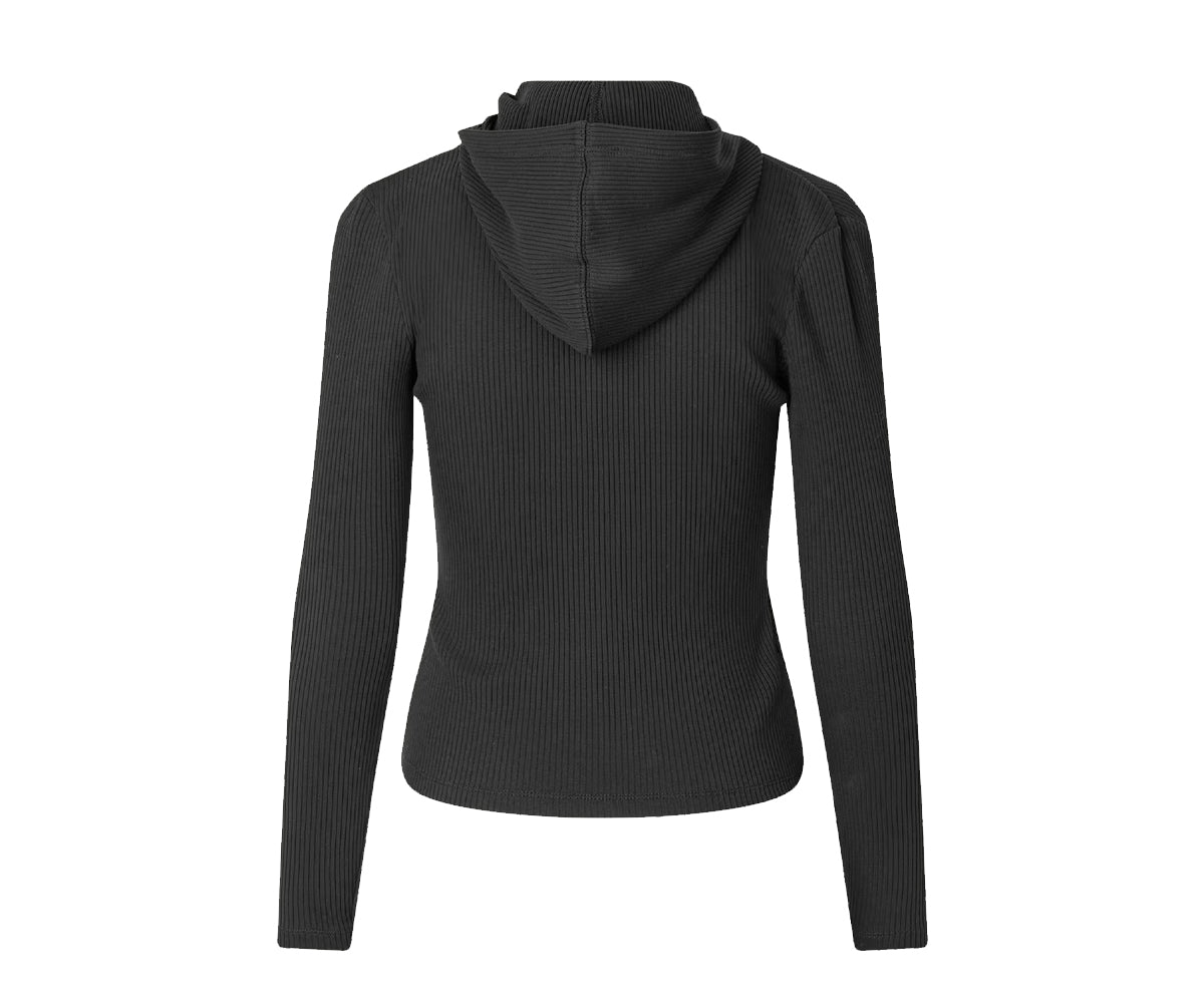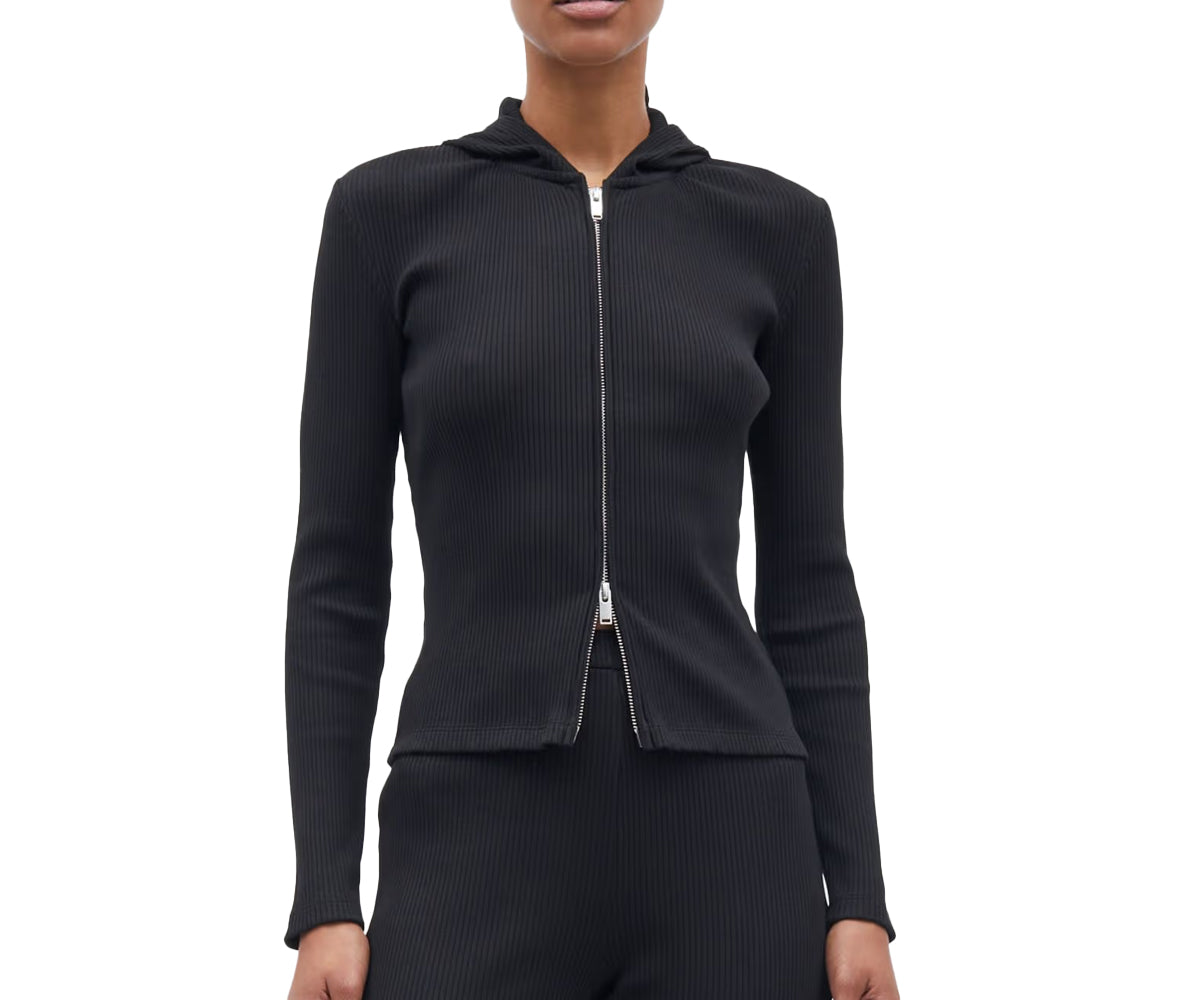 Felpa con cappuccio in jersey lavorato a coste con vestibilità attillata. Chiusura con cerniera a due vie sul davanti. Materiale principale realizzato in una miscela elastica di cotone biologico. Questo prodotto è certificato GOTS. Ogni fase della filiera ha soddisfatto rigorosi requisiti sociali, ambientali e chimici.