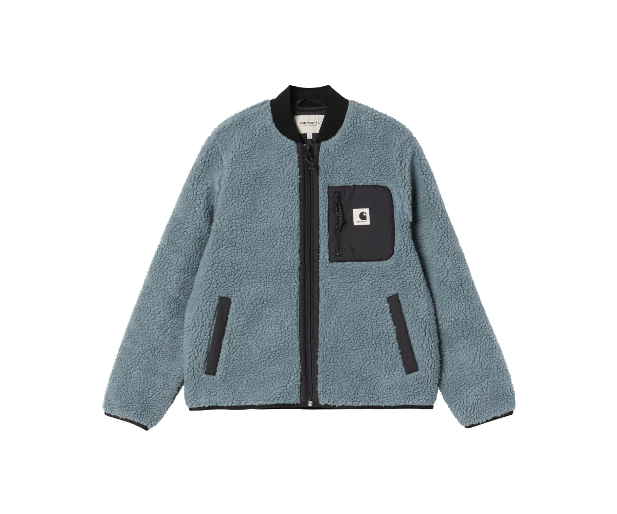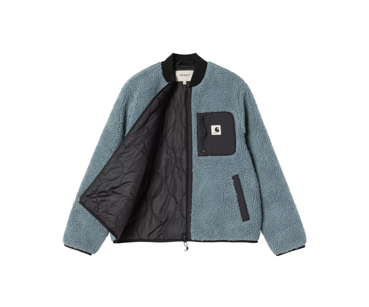 Il modello Janet Liner da donna è un modello di peso medio, realizzato in pile di poliestere. Mentre alcune versioni del modello Janet Liner da donna presentano una tinta unita all-over, altre presentano un rivestimento esterno in jacquard con motivo mimetico o il motivo Verse di ispirazione barocca. All'interno, il capo è foderato in taffetà di nylon su corpo e maniche. È impreziosito da un colletto a coste, una tasca sul petto in taffetà di nylon a contrasto e un'etichetta quadrata in tessuto.