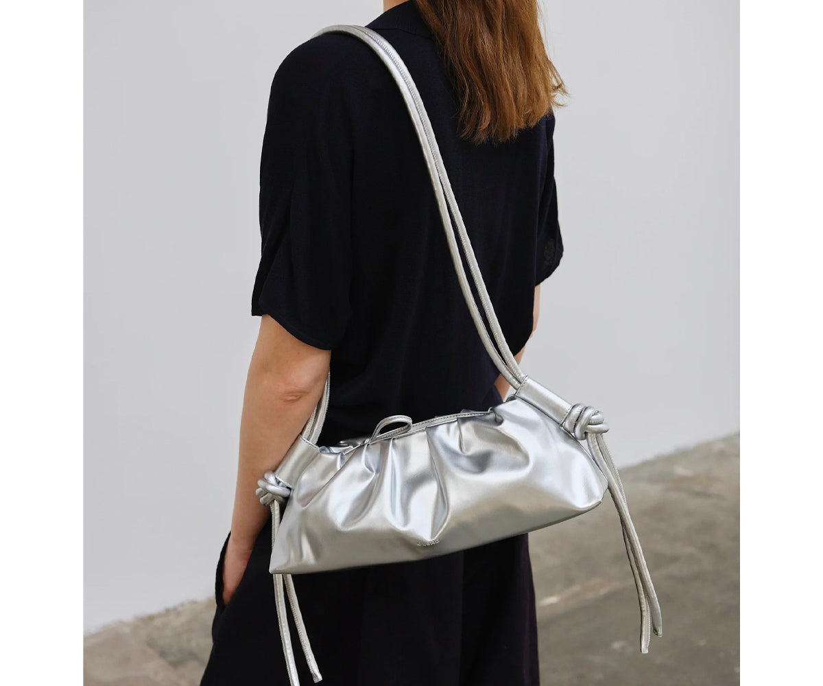 Unendo funzionalità ed eleganza, la Dumpling Bag è progettata per un facile passaggio dal giorno alla sera. Realizzata in morbida e resistente pelle vegana (idrorepellente e antigraffio), offre una superficie splendidamente liscia e flessibile. Dotata di un esclusivo sistema a doppio manico, la Dumpling Bag può essere indossata in diversi modi, con nodi regolabili che aggiungono un tocco personalizzato.