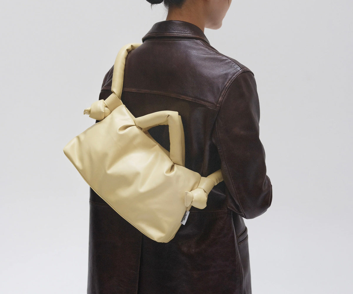 La versione piccola della borsa Ona. Leggera e voluminosa, è perfetta per trasportare tutto l'essenziale. Realizzata in morbida pelle vegana, questa borsa aggiunge un tocco glamour a qualsiasi outfit.