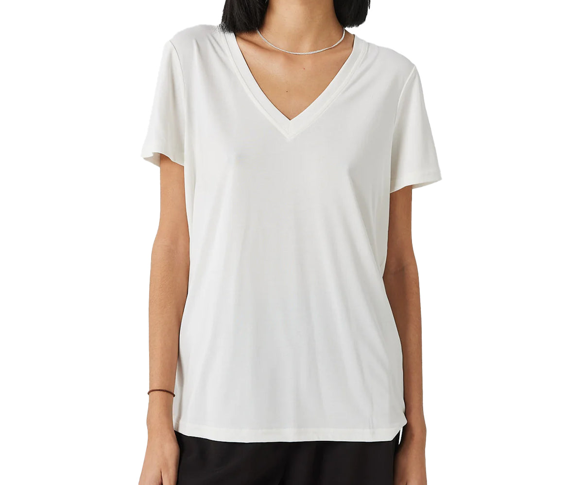 Rynih 0281 è una t-shirt a maniche corte realizzata in modal e poliestere riciclato per una qualità morbida. La t-shirt ha una vestibilità regolare e presenta uno scollo a V.