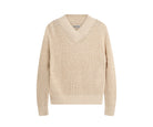 Maglione dalla vestibilità comoda, realizzato in filato a costine. Caratterizzato da un audace scollo a V a costine e da maniche e corpo casual, questo maglione a maglia aperta è il capo perfetto per il look a strati primaverile.