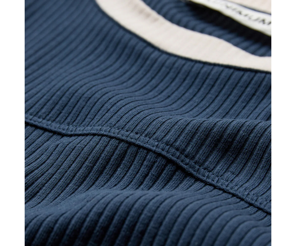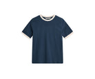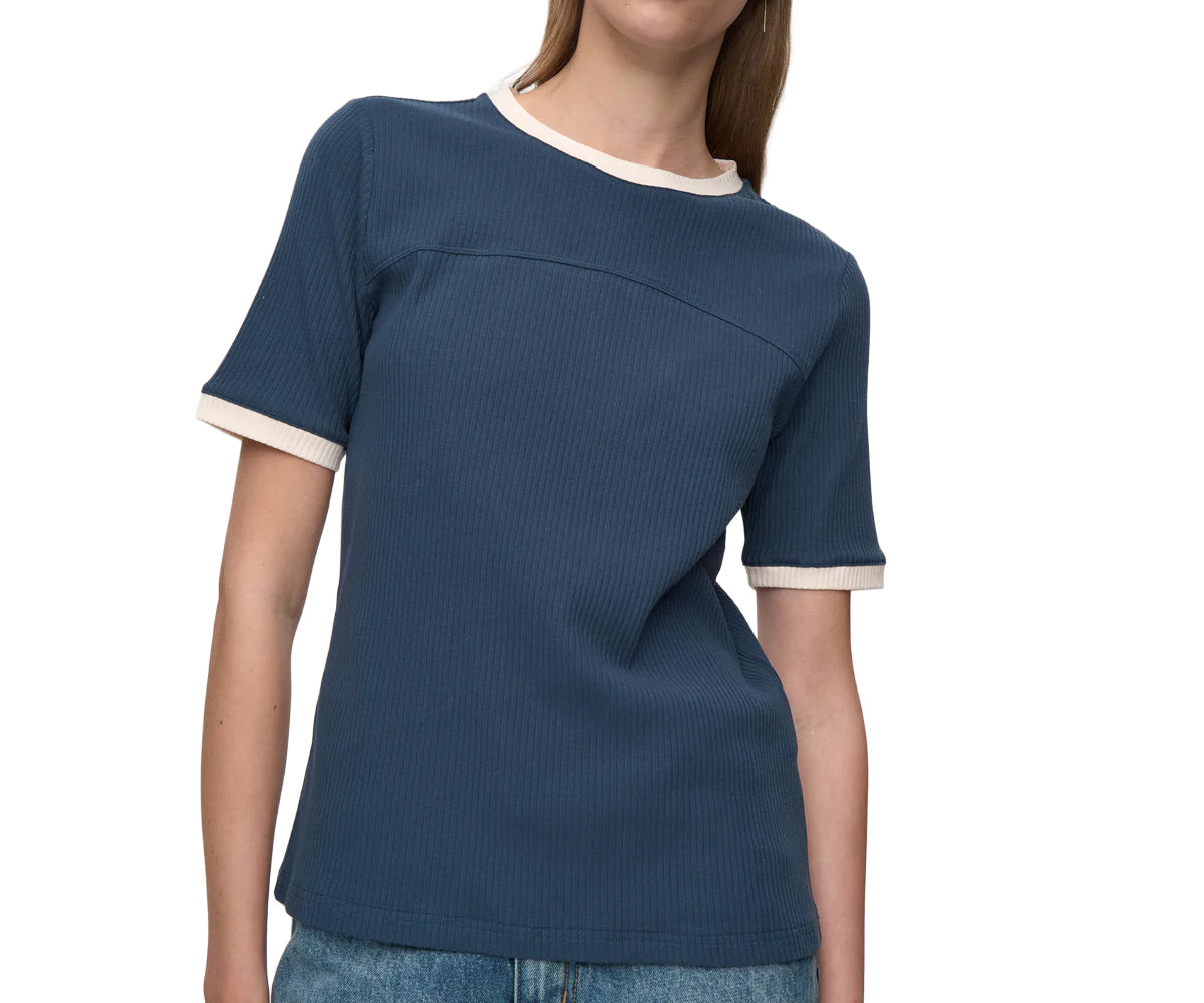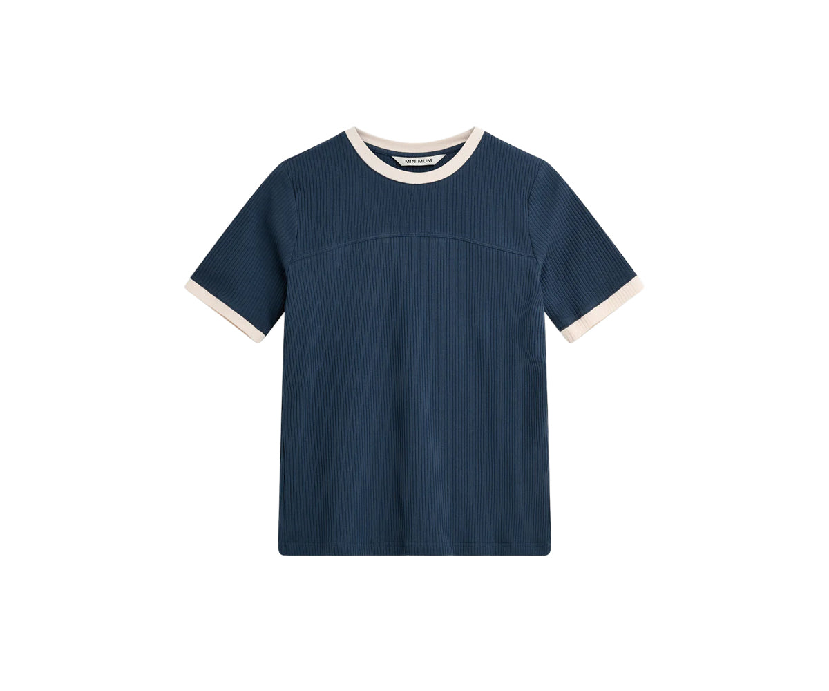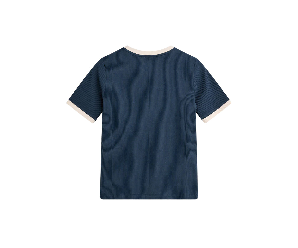 T-shirt a coste di ispirazione retrò con bordi a contrasto lungo lo scollo e l'orlo delle maniche. Abbinala a pantaloni sartoriali per aggiungere un tocco più sportivo al tuo look.