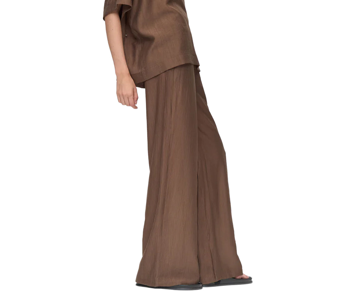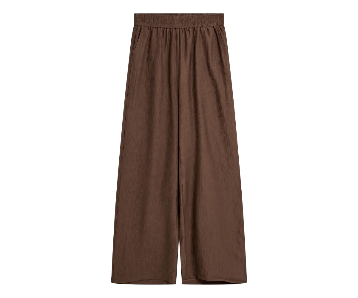 Pantaloni con elastico in vita in misto lyocell semitrasparente per un look fresco e casual, con tasche laterali e gamba larga.