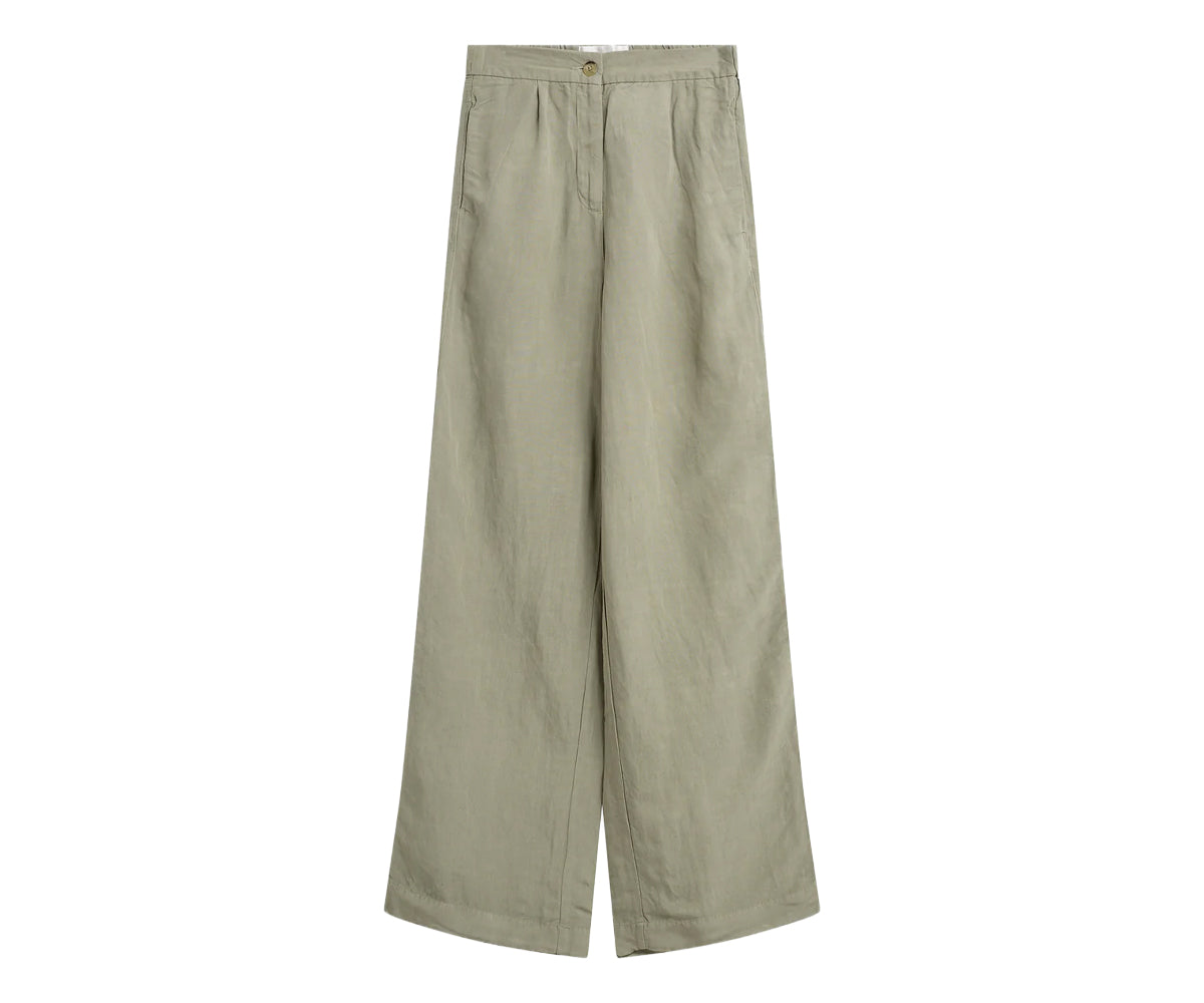 Pantaloni casual a gamba larga con parte anteriore sfilata ed elastico in vita sul retro per una vestibilità più flessibile. Realizzati in un lussuoso mix di lino e viscosa.