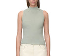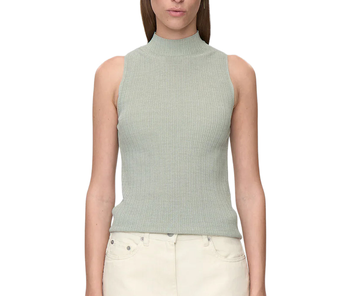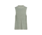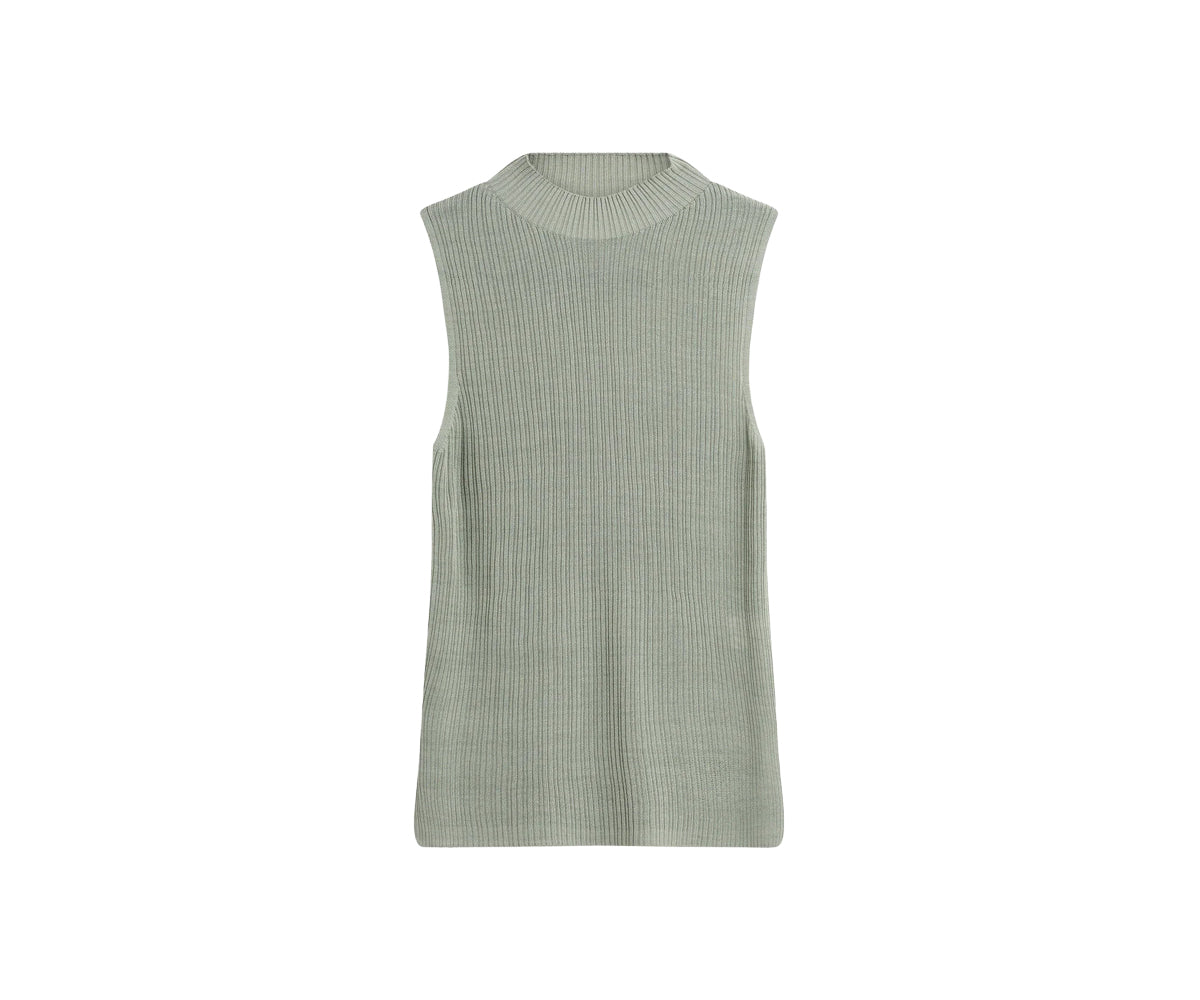 Il dolcevita alto e la silhouette senza maniche conferiscono un tocco moderno e deciso, mentre il materiale lavorato a maglia garantisce una vestibilità comoda.