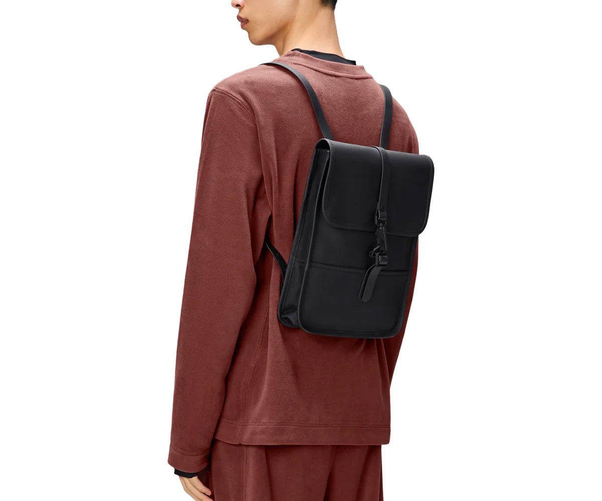 Il Backpack Micro è realizzato nell'iconico tessuto PU di Rains, progettato per essere robusto, duraturo e piacevole al tatto.