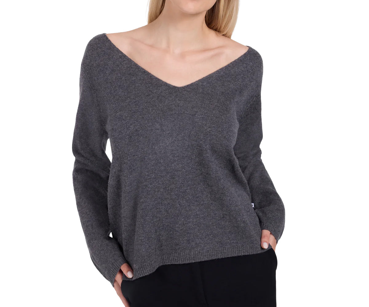 Codas è un maglione lavorato a maglia, realizzato al 60% in lana merino e al 40% in lana riciclata, per una vestibilità morbida e avvolgente. La maglia ha una vestibilità leggermente ampia, maniche lunghe e un profondo scollo a V sul davanti. La modella è alta 180 cm e indossa una taglia S.