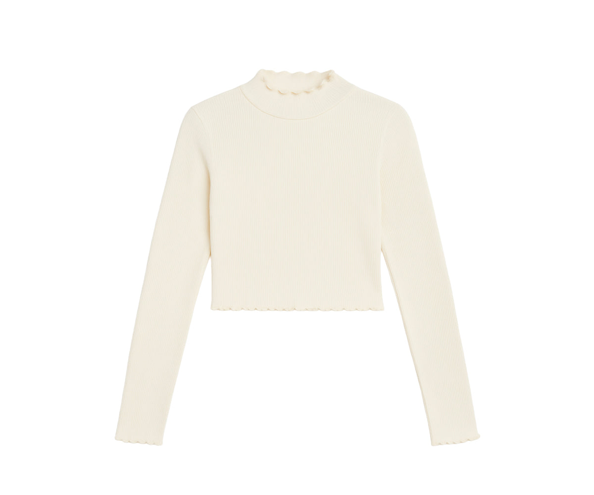 - Presenta collo a lupetto e bordi arricciati per un'aggiunta romantica ma comoda a qualsiasi outfit.