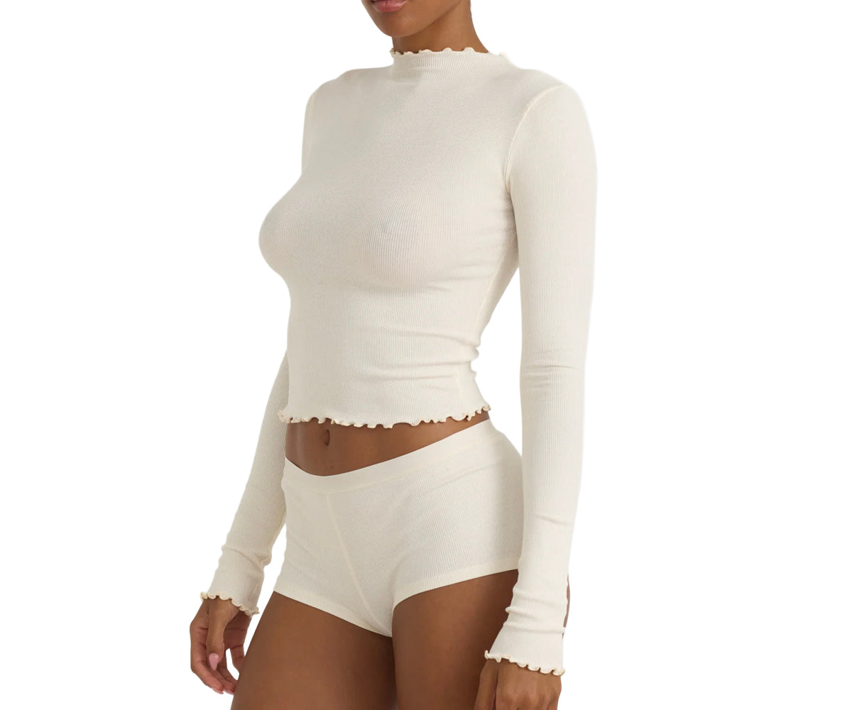 Core Rib Mock Neck L/S Tee - Soft Vanilla
