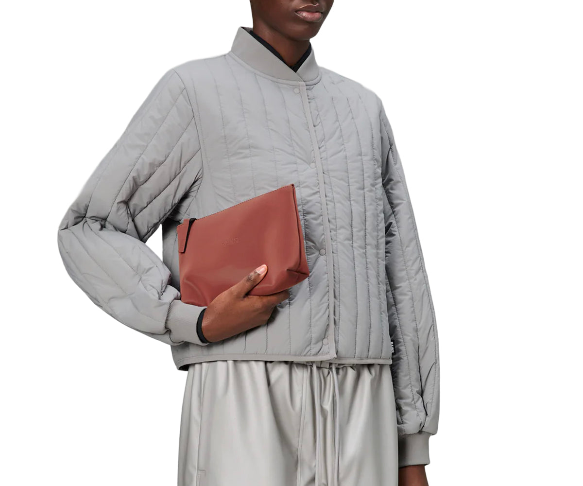 La Cosmetic Bag è realizzata nell'iconico tessuto PU impermeabile di Rains, progettato per essere robusto, duraturo e piacevole al tatto.