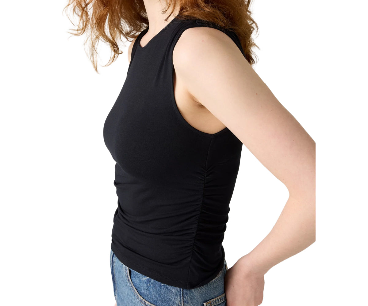 Sostituisci la tua T-shirt per tutti i giorni con il top Crystal con ruche. Progettato con taglio smanicato, aderente e un design con ruche.