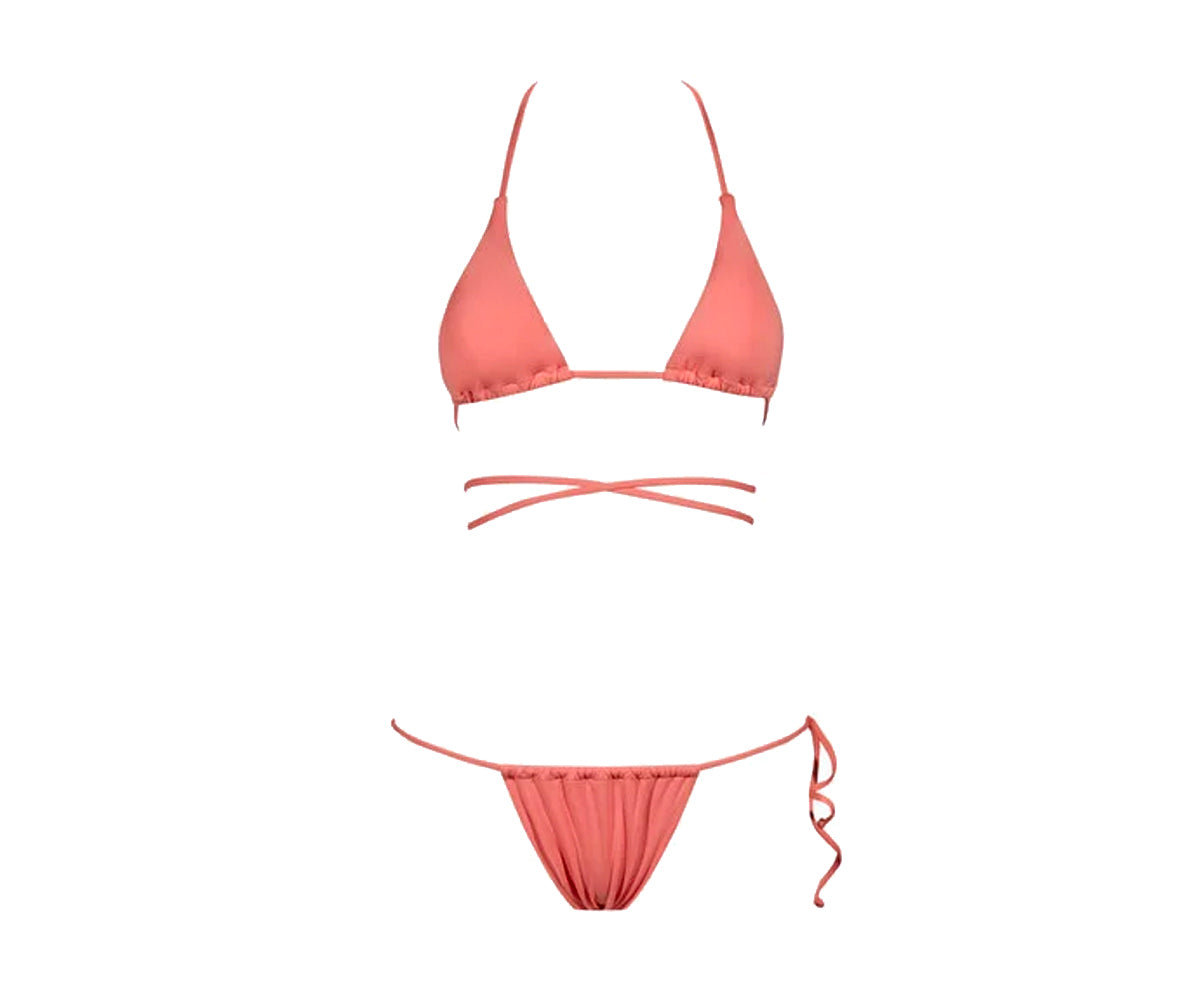 Slim fit triangle with removable cup, briefs with adjustable lace. Hand wash cold