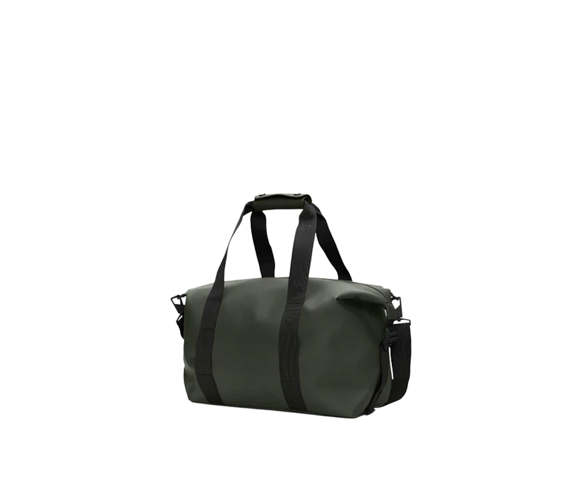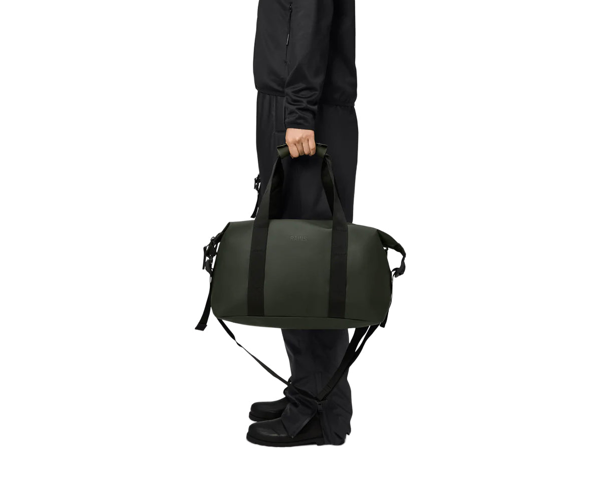 La Hilo Weekend Bag Small è realizzata nell'iconico tessuto PU impermeabile di Rains, progettato per essere robusto, duraturo e piacevole al tatto.