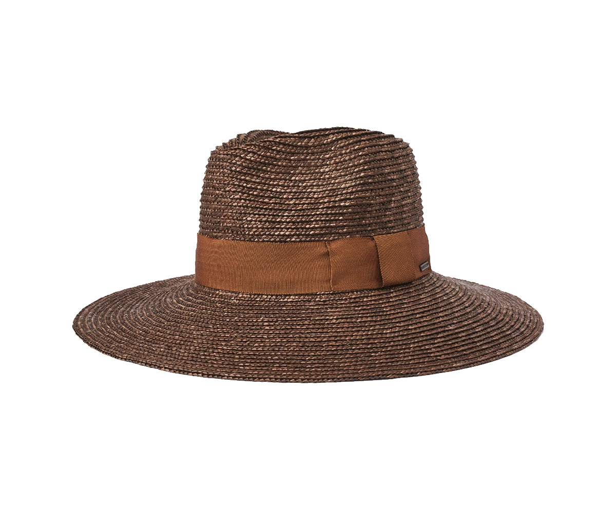 The Joanna hat is a sophisticated, wide-brimmed straw hat, perfect for sunny weather.