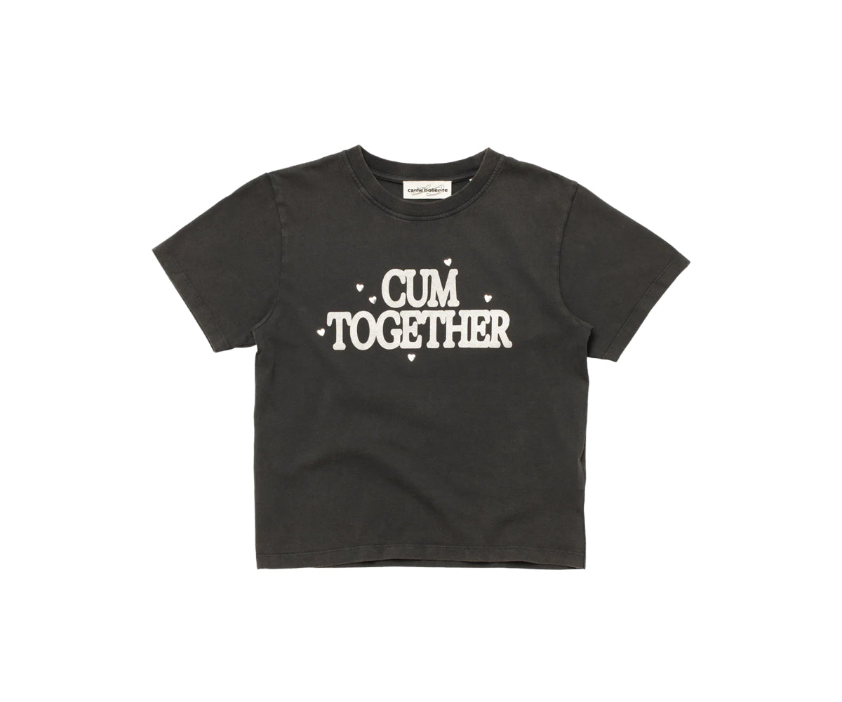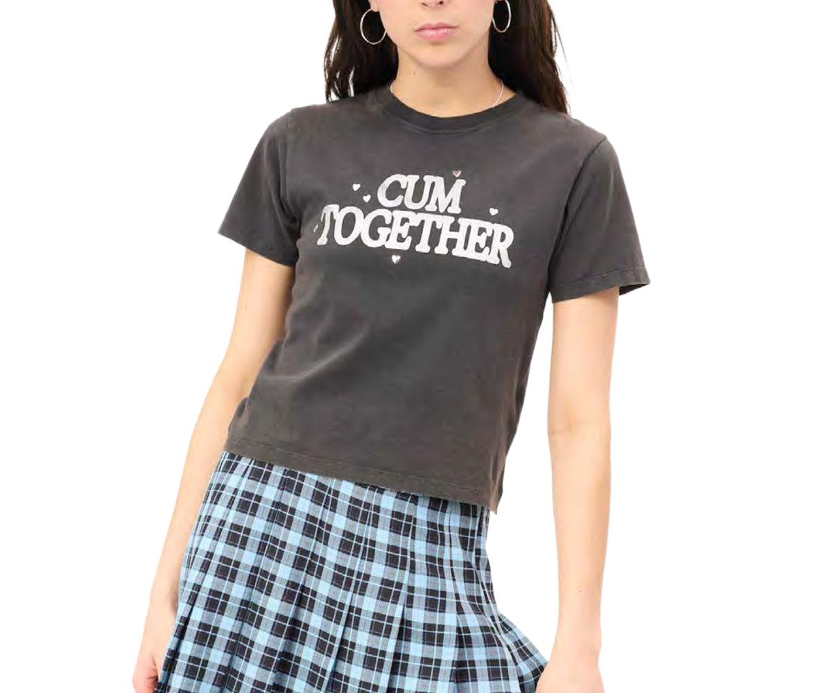 T-shirt girocollo a a maniche corte con stampa sul fronte rifinita con patch metalliche.