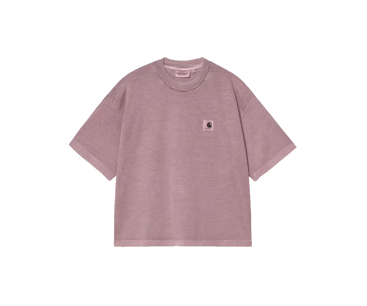 La t-shirt Nelson da donna a maniche corte è realizzata in jersey di cotone leggero, con una vestibilità ampia e una silhouette corta. Il capo è stato tinto in capo per una sensazione più morbida e una combinazione di colori più complessa. Un'etichetta quadrata in tessuto, resa opaca dal processo di tintura, è presente sul lato sinistro del petto.