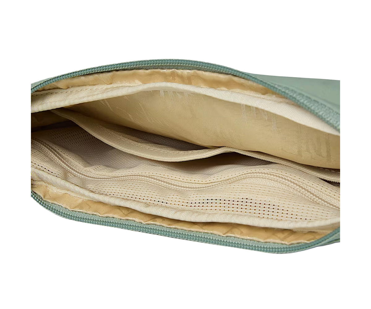 La borsa a tracolla Never Stop ha le dimensioni perfette per tenere i tuoi oggetti di valore vicino a te mentre esplori. La cinghia in fettuccia di raso è regolabile per il massimo comfort e c'è una tasca con cerniera sul retro per contenere gli oggetti più piccoli. Il tessuto riciclato stropicciato ha una consistenza vintage, aggiungendo stile a qualsiasi spedizione in città.