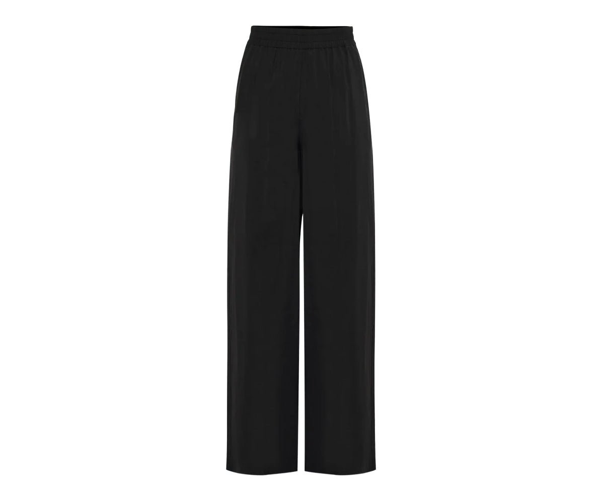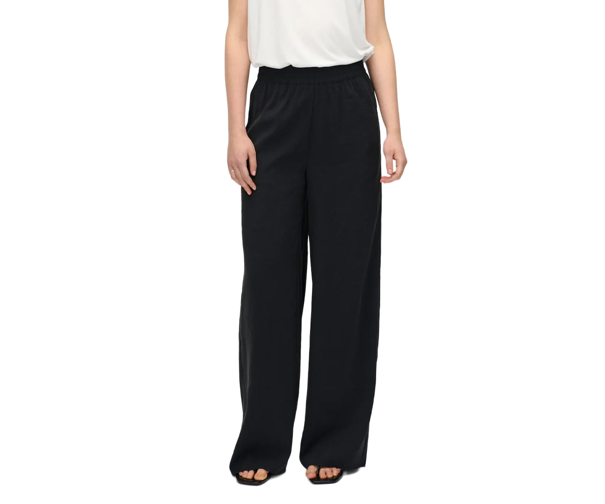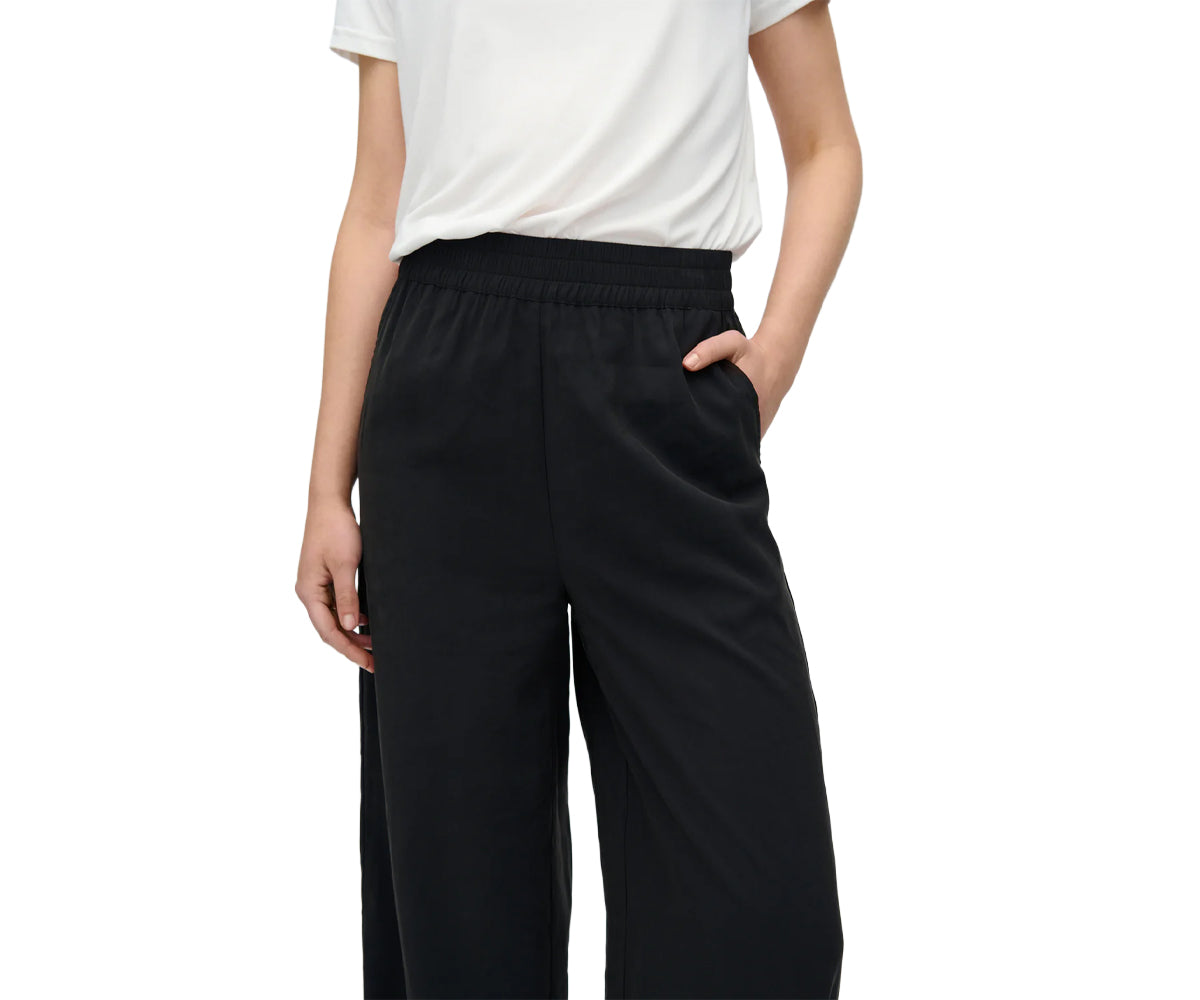 Realizzati in viscosa e poliestere, che garantiscono leggerezza e traspirabilità, con un orlo raffinato. I pantaloni presentano una comoda vita elasticizzata e due discrete tasche laterali che li rendono pratici ed eleganti, mentre il taglio dritto crea una silhouette elegante che può essere indossata sia per il lavoro che per le occasioni casual. Disponibili in tonalità naturali e tenui che si adattano al guardaroba minimalista e rendono lo stile semplice.