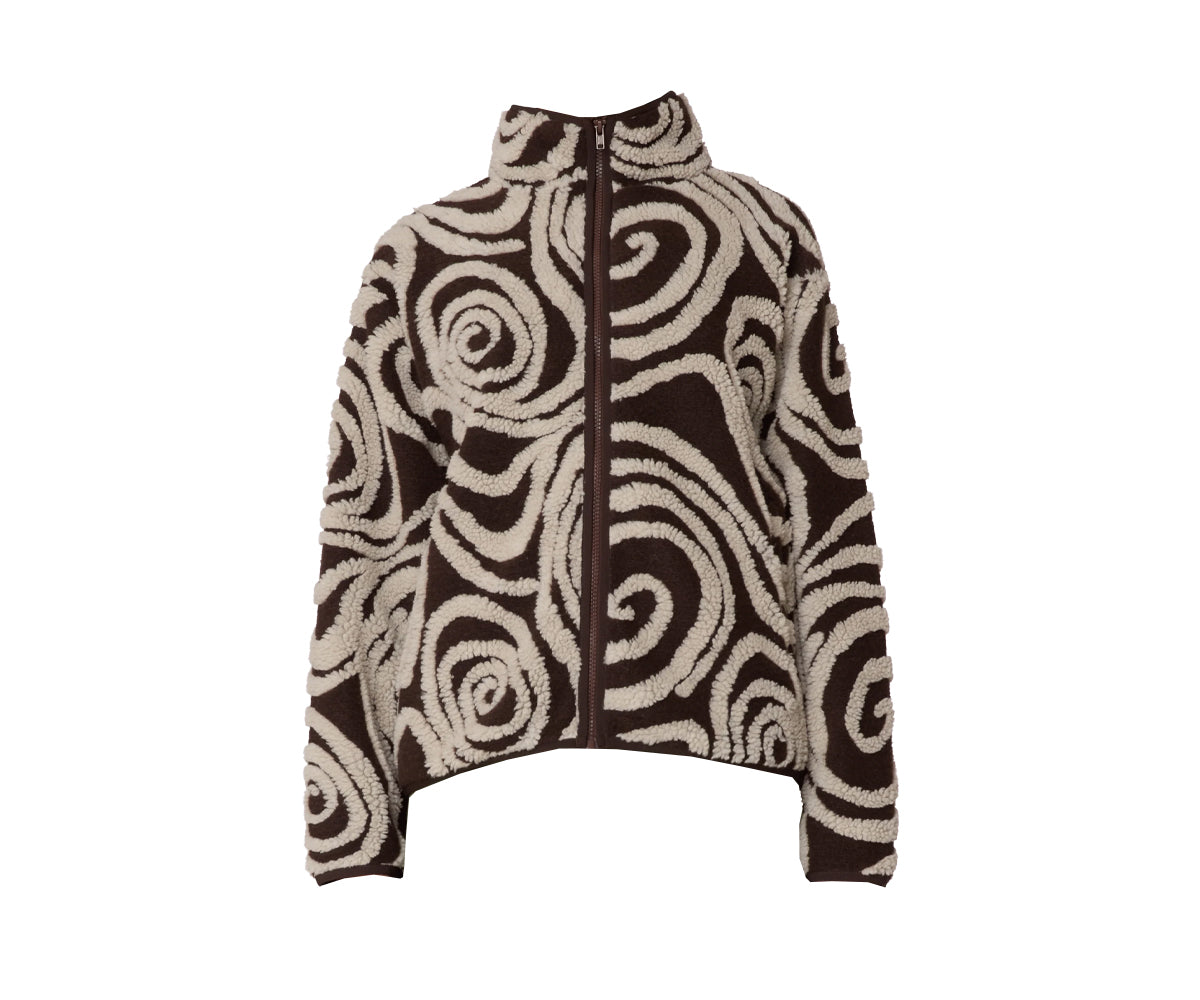 Swirl Jacquard Zip Jacket - Brown Multi
