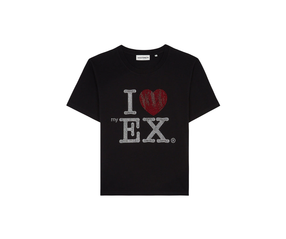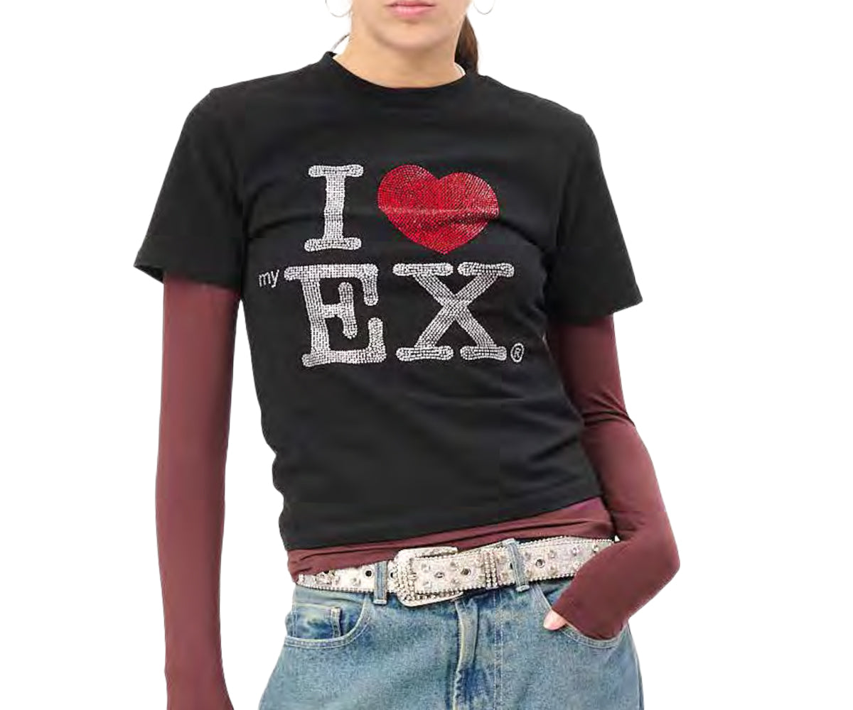 T-shirt girocollo a a maniche corte con applicazioni strass sul davanti, vestibilità corta.