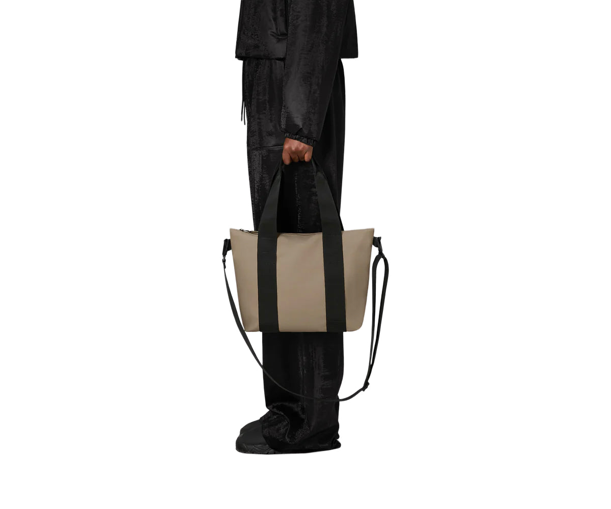 La Tote Bag Micro è realizzata nell'iconico tessuto PU di Rains, progettato per essere robusto, duraturo e piacevole al tatto.