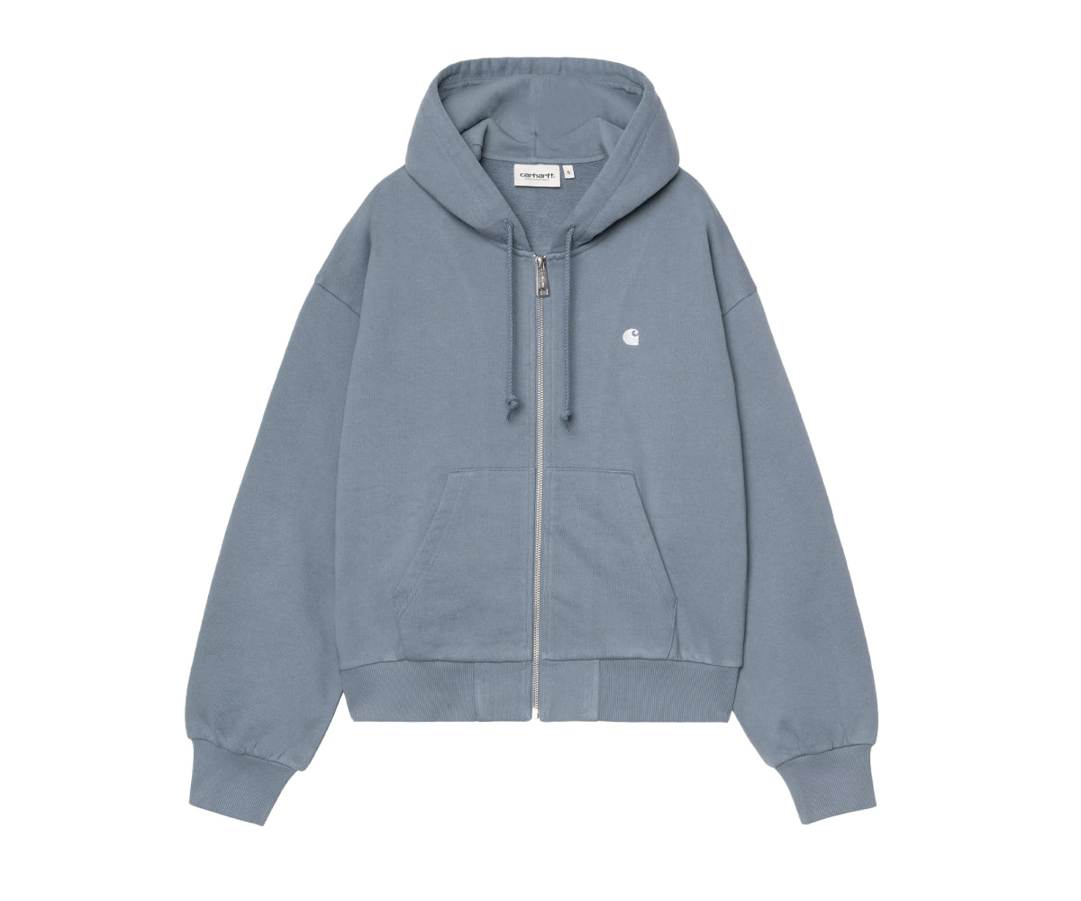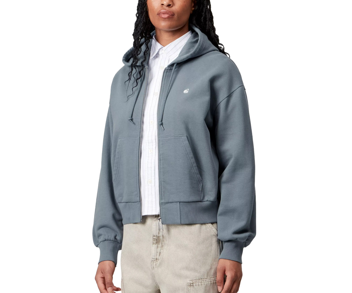 Realizzata in jersey di cotone pesante da 375 g, la giacca con cappuccio Casey da donna ha una vestibilità a palloncino, leggermente più ampia e squadrata, ma caratterizzata anche da spalle scese e polsini a coste che creano un effetto aderente. Il tessuto in jersey è stato inoltre spazzolato per ottenere un effetto felpato. Sul petto è ricamato il logo "C" color argento.