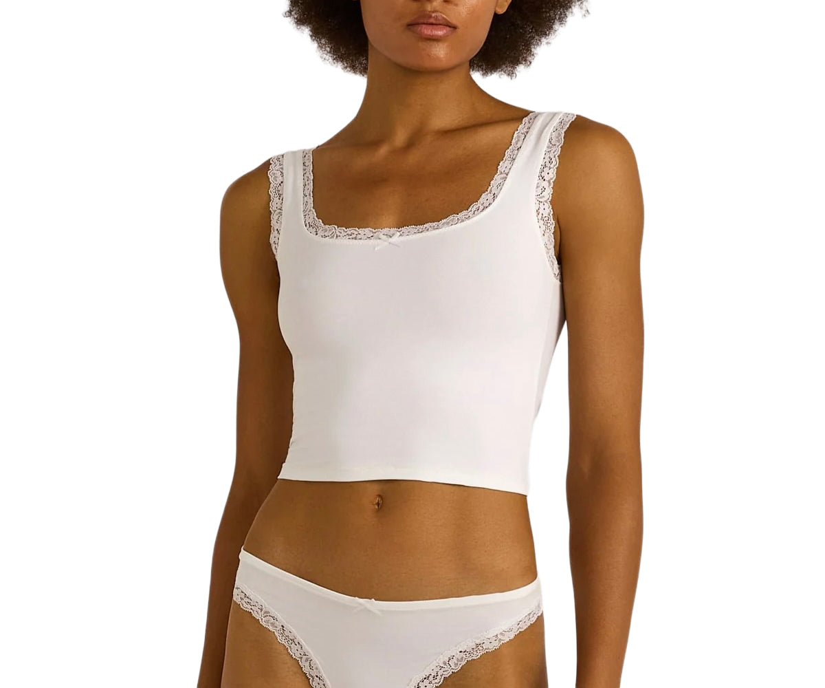 Una canotta elasticizzata e aderente con finiture in pizzo e un piccolo fiocco. La canotta Flex Lace porta il comfort-cute a un livello superiore.