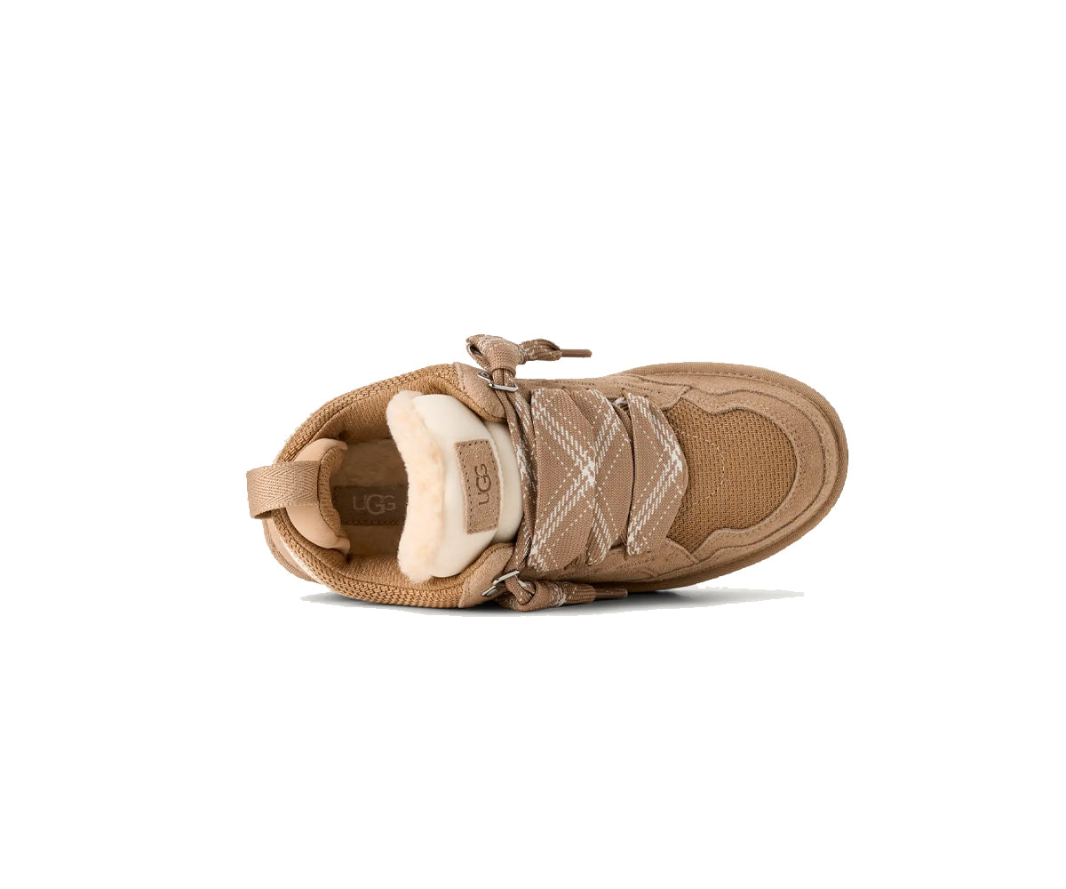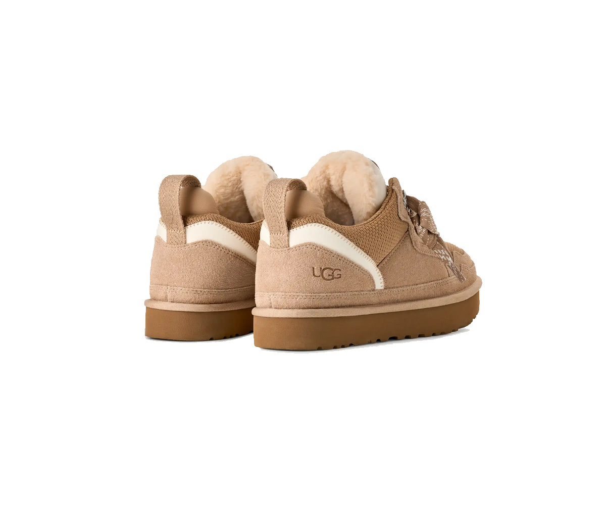 - Tomaia in rete di tela intrecciata riciclata e camoscio, cinturino sul tallone in tessuto resistente, applicazione con logo UGG®, collarino imbottito, linguetta oversize imbottita