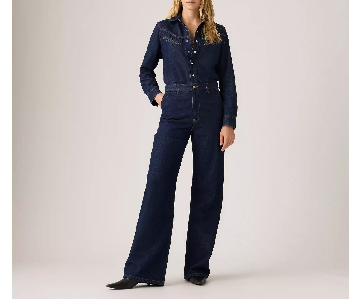 Le vibrazioni rilassate dei classici americani incanalate nella tuta Rinoa a gamba larga. Questo capo essenziale presenta una chiusura frontale con bottoni, cuciture di ispirazione western e una vestibilità comoda e rilassata.